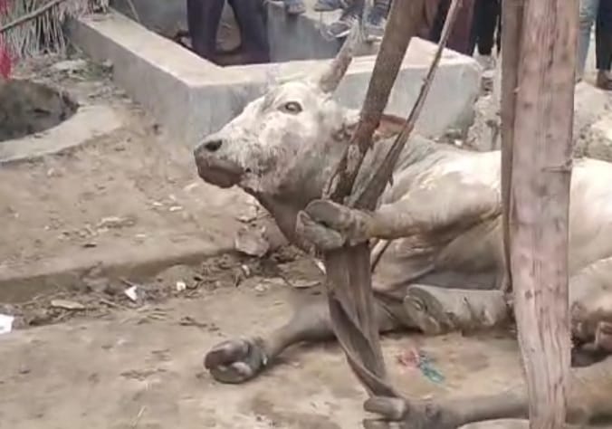 सीबीगंज (बरेली)। खुला हुआ कुंआ बन सकता था सांड के लिए काल, ग्राम प्रधान और बिजली विभाग के लाइनमैन की सक्रियता के चलते वमुश्किल से क्रेन मंगवाकर कुंए से निकाला गया सांड।