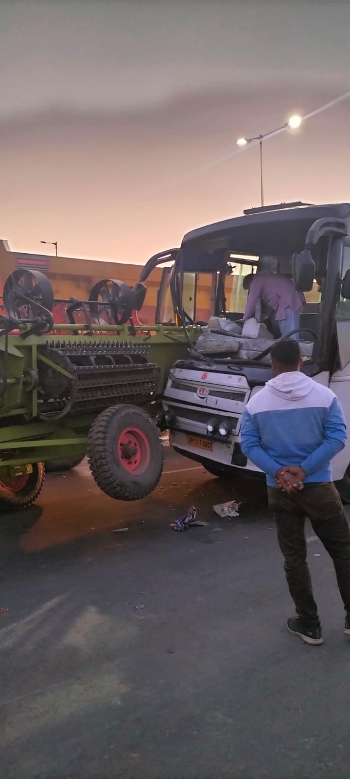 इटावा संवाद: बकेवर थाना कस्बा के आजाद ढाबा के समाने सिक्सलेन हाइवे पर कंबाइन हार्वेस्टर में घुसी श्रद्धालुओं से भरी बस,कोई जनहानि नहीं हुई हैं। पुलिस ने क्षतिग्रस्त बस को हटवा कर साइड से खड़ा करवाया गया।