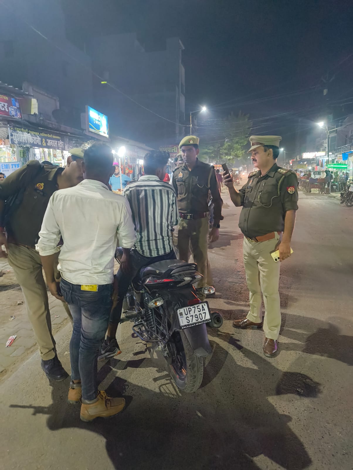 कस्बे के मुख्य चौराहे पर नाकाबंदी। इटावा क्षेत्र के लोगों के लिए महत्वपूर्ण है क्योंकि यह उनके क्षेत्र में सुरक्षा व्यवस्था को बेहतर बनाने के प्रयासों को दर्शाती है।