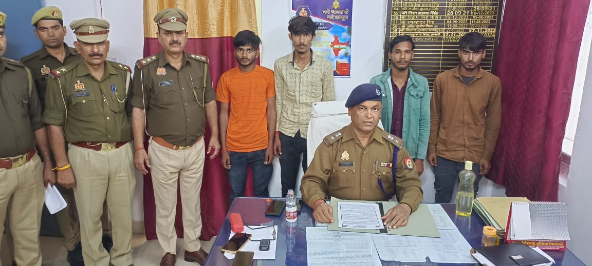 अपर पुलिस अधीक्षक ग्रामीण सत्यपाल सिंह ने बकेवर थाना में प्रेस के लोगों को जानकारी देते हुए बकेवर थाना प्रभारी इंस्पेक्टर राकेश कुमार शर्मा अपने हमराह फोर्स के साथ उरेंग निबाड़ी कला मार्ग पर ग्राम खितौरा को जाने वाले तिराहे पर रविवार मध्य रात्रि संदिग्ध व्यक्तियों व वाहनों की चेकिंग कर रहे थे इसी दौरान एक पिकअप गाड़ी आती दिखाई पड़ी तो पुलिस ने सन्देह के तौर पर उस पिकअप को रुकवाने का इशारा किया। पुलिस को देखकर पिकअप के चालक ने पिकअप को भगाने का प्रयास किया। इस पर पुलिस की टीम ने पीछे से पीछा करते हुए पिकअप को पकड़ लिया। पिकअप में बैठे चार लोगों को पुलिस ने पकड़ लिया जबकि दो भाग जाने में सफल रहे। पिकअप के पिछले हिस्से को खोलने पर देखा तो उसमें बिजली कटे हुए तार के बंडल लदे हुए थे। तथा दो समरसेविल पंप भी लदे हुए थे। पूछताछ करने पर पकड़े गए चोरों ने बताया कि बिजली के तार चोरी से काटे हुए हैं, समरसेविल भी चुराई हुई हैं इनको बेचने के लिए ले जा रहे थे। पकड़े गए चोरों ने पूछताछ में अपने नाम अंकित पुत्र विनोद दोहरे, निवासी ग्राम लाखी, मोहित पुत्र वृंदावन दोहरे, सनी पुत्र सुधीर दोहरे निवासी ग्राम नया नगला, पंकज पुत्र हर्ष कुमार निवासी ग्राम रामनगर थाना बकेवर बताया।