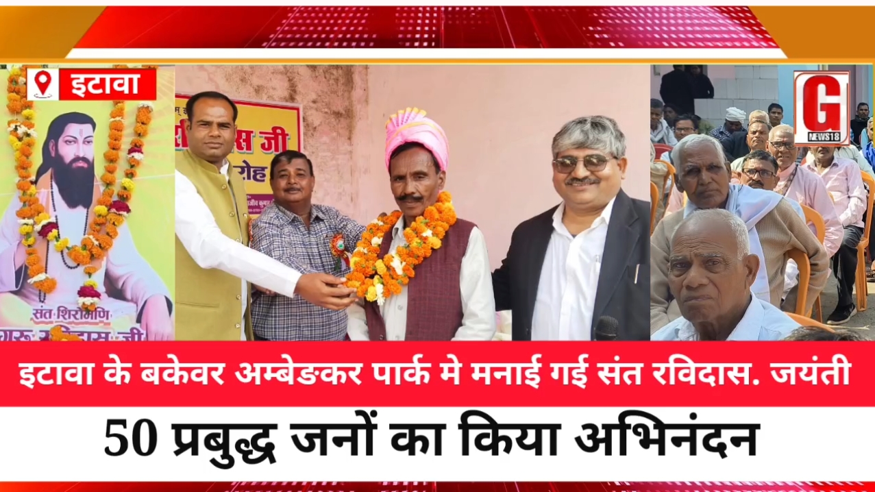 इटावा के बकेवर में जन वैश्य समाज के तत्वावधान में कस्बे के अंबेडकर पार्क में संत रविदास जयंती धूमधाम से मनाया गया। संत रविदास के चित्र के समक्ष पूजन किया गया। इसके बाद गोष्ठी सभा का आयोजन कर संत रविदास के जीवनवृत्त पर प्रकाश डाला गया।