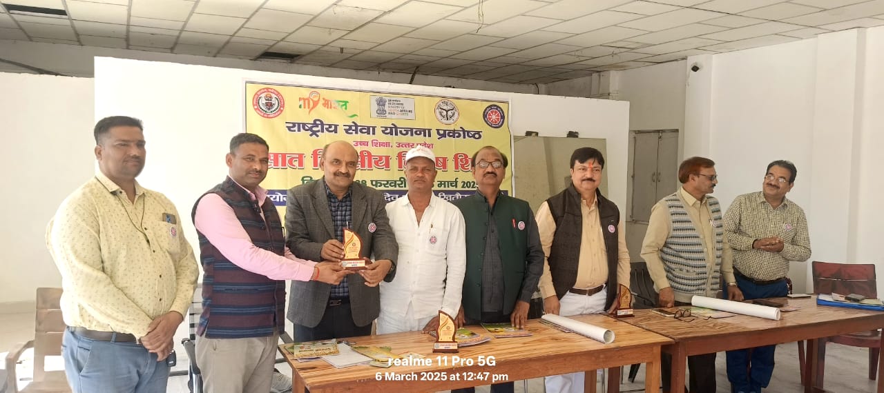 तद्पश्चात स्वयंसेवकों ने सेवा कार्य किया, जिसमें जय गुरुदेव की कुटी के परिसर की साफ सफाई की गई। विशेष शिविर के प्रथम सत्र में स्वयंसेवकों ने सांस्कृतिक कार्यक्रम अपनी ट्रेडिशनल वेशभूषा में किया। जिसमें मुख्य रूप से सौरभ गुप्ता, सौरभ कुमार, कपिल वर्मा, संध्या वर्मा, तनु, तनुष्का, पायल तथा मनीषा ने अपनी प्रस्तुति दी। समापन सत्र में सत्र के अध्यक्ष प्राचार्य प्रो राजेश किशोर त्रिपाठी ने स्वयंसेवकों को उनके साथ दिवस में सीखने की प्रवृत्ति के बारे में विस्तार से चर्चा की तथा कहा कि ऐसे कार्यक्रमों से छात्रों में सहयोग तथा नेतृत्व की भावना विकसित होती है। मुख्य अतिथि व पूर्व छात्र जनता कॉलेज बकेवर समिति के अध्यक्ष डॉ अनिल दीक्षित ने विशेष शिविर के स्वयंसेवकों को महान दार्शनिक स्वामी विवेकानंद जी के विचारों से प्रेरित किया और कहा कि उनको जरूर पढ़ना चाहिए। जिससे राष्ट्रीय सेवा योजना के मूल मूल उद्देश्य की पूर्ति हो सके। उन्होंने कहा कि आप सभी को पहले सद्भाव, परोपकार तथा व्यक्तित्व विकास के लिए प्रेरणा लेनी पड़ेगी, तभी आप दूसरों को जागरुक कर पाएंगे। शिविर के संरक्षक तथा जय गुरुदेव आश्रम के अध्यक्ष अरविंद यादव ने स्वयंसेवकों के सात दिवसीय प्रवास के बारे में चर्चा की। उन्होंने बताया कि स्वयंसेवकों में अनुशासन, परोपकार तथा एकता की भावना जो विकसित हुई है उससे निश्चित ही सभी स्वयंसेवक अपनी जिंदगी में सफल होंगे। कार्यक्रम में डॉ एम पी यादव ने स्वयंसेवकों को संबोधित किया तथा सात दिवसों के अनुभवों को जीवन भर एक दूसरे से साझा करने के लिए प्रेरित किया। पूर्व कार्यक्रम अधिकारी डॉ पी के राजपूत ने स्वयंसेवकों के लिए स्वयं से पहले आपका उद्देश्य को पूर्ण करने के लिए अपने विचारों से प्रेरणा दी। डॉ एम पी सिंह ने स्वयंसेवकों को सामाजिक सद्भावना के लिए तथा समाज में फैली कृतियों के प्रति जागरूक रहने के लिए दिशा निर्देशन किया। कार्यक्रम में पूर्व प्रधान चंद्र मोहन यादव, ध्यान सिंह आदि ने स्वयंसेवकों को संबोधित किया। कार्यक्रम में स्वयं सेविका तनु एवं स्वयंसेवक कपिल वर्मा सौरभ गुप्ता ने सात दिवसीय विषय शिविर के अपने अनुभवों का साझा किया। कार्यक्रम के अंत में कार्यक्रम अधिकारी डॉक्टर मनोज यादव ने सभी को धन्यवाद ज्ञापित किया। समापन सत्र के बाद राष्ट्रगान के साथ विशेष शिविर का समापन किया गया। मंदिर परिसर के सेवक त्यागी महाराज भंडारी सुनील आज का विशेष सहयोग रहा। इस मौके पर शिक्षणेत्तर कर्मचारी राजकुमार वर्मा शैलेंद्र कुमार आदि सहित 50 स्वयंसेवक उपस्थित रहे।