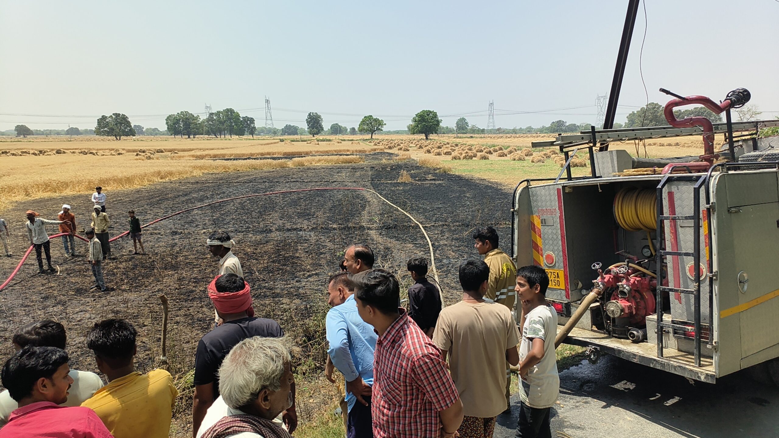 बकेवर थाना क्षेत्र के लखना के समीपवर्ती गाँव नगला कले के दो किसान बलराम सिंह और श्याम सिंह के गेहूँ की पकी खङी फसल मे रविवार दोपहर करीब 12 बजे अचानक भीषण आग लग गयी हैं। देखते ही देखते आग ने विकराल रूप धारण कर लिया। आग की लपटे देख गांव से लोग भाग कर आए, झाड़ियों की डाली तोड़कर आग बुझाने में लग गए सूचना मिलने पर लखना चौकी प्रभारी मंजीत दयाल मय पुलिस फोर्स और फायर ब्रिगेड टीम ने मौके पर पहुंच कर कड़ी मश्क्कत कर आग पर काबू पाया गया। लेकिन जब तक दो किसानों की करीब 8 बीघा गेहूं की फसल जलकर राख हो गई ,गेहूं की फसल में आग लगी देख अन्नदाता रो पड़ा। किसान की साल भर की मेहनत में आग लगी, जगबीर सिंह बोले की बटाई पर गेहूं की फसल की थी, आग लग गई है, कुछ ही देर पहले गेहूं की कटाई करके घर पहुंचा ही था कि तभी आग लगने की सूचना मिली, गेहूं की फसल जलकर राख हो गई है,चश्मदीद शिववीर सिंह बोले की गेहूं की पक्की खड़ी फसल में अचानक आग लगी है कड़ी मशक्कत कर आग पर काबू पाया गया। फायर ब्रिगेड अधिकारी सुभाष चंद्र आर्य बोले की नगला के पास आग लगने की सूचना प्राप्त हुई। जिस पर मौके पर टीम के साथ गाड़ी लेकर पहुंचे, कड़ी मशक्कत कर आग पर काबू पा लिया है, गेहूं की पड़ी पक्की फसल दो किसानो की जल गई है। फिलहाल किसानों का बड़ा नुकसान होने से समय रहते बचा लिया गया।