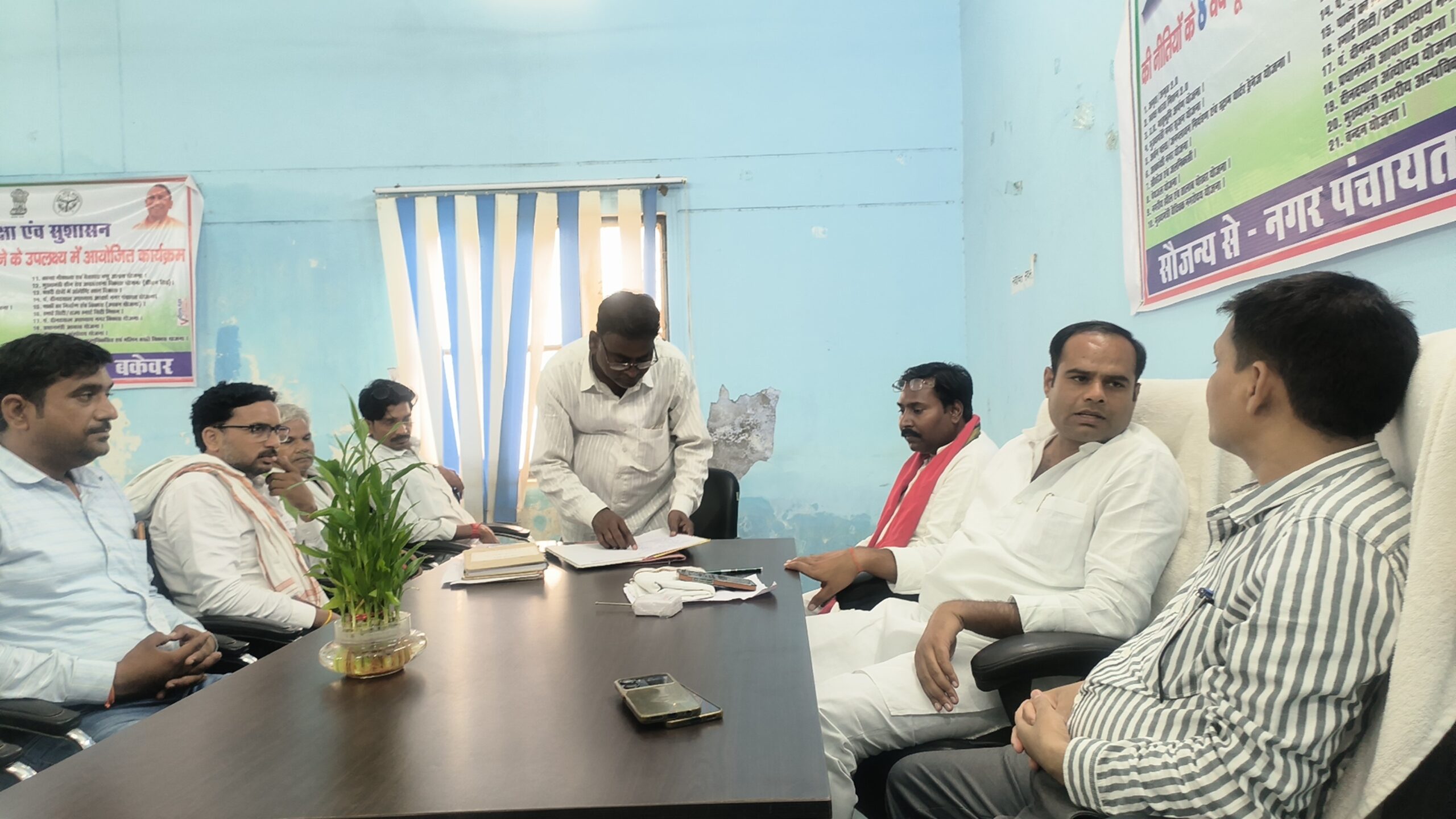 बकेवर नगर पंचायत की बोर्ड बैठक आधिशाषी अधिकारी एवं चेयरमैन और सपा सांसद नवागंतुक प्रतिनिधि की अध्यक्षता में बैठक आयोजित की गयी। बोर्ङ बैठक में सभी सभासदों की उपस्थिति रही। बोर्ड बैठक के दौरान सभी सभासदों ने अपनी अपनी वार्डों की नाली सङक निर्माण पानी साफ सफाई कूङा प्रबंधन व प्रचार प्रसार के लिए एल ङी टीवी आदि प्रस्ताव पर मोहर लगी।