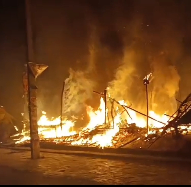 इटावा के बकेवर थाना क्षेत्र के लखना कस्बा के सब्जी मण्ङी में आढत की दुकान समेत तीन दुकानों में लगी भीषण आग, लाखों का समान जलकर राख।