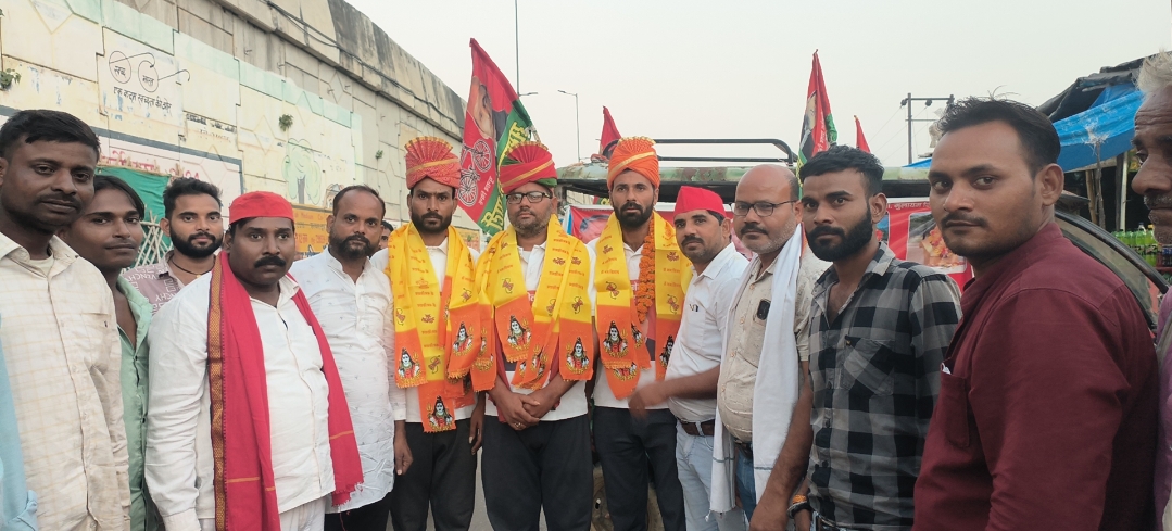 सपा कार्यकर्ताओं की दण्डवत यात्रा का बकेवर में भव्य स्वागत
