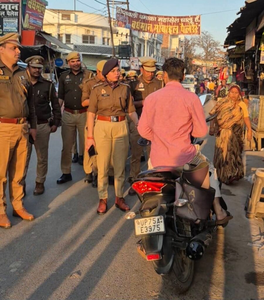 जबकि तेज आवाज में पटाखा छोड़ने वाली एक बुलेट मोटरसाइकिल को सीज कर दिया गया।चेकिंग के साथ पुलिस ने नगर क्षेत्र में फ्लैग मार्च भी किया। बाजार व मुख्य मार्गों पर सुरक्षा व्यवस्था का जायजा लिया गया। महिला आरक्षियों ने राह चलती महिलाओं से संवाद कर सुरक्षा संबंधी जानकारी दी और हेल्पलाइन नंबरों से अवगत कराया।इसके अलावा अतिक्रमण के खिलाफ भी कार्रवाई की गई। दुकानों के बाहर सामान रखकर मार्ग अवरुद्ध करने वाले दुकानदारों को चेतावनी देते हुए सामान हटवाया गया।